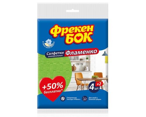 Вискозные салфетки Фламенко Фрекен БОК имеют мягкую и приятную на ощупь текстуру, хорошо впитывают жидкость, не оставляют ворсинок и разводов на поверхности. Предназначены для всех видов уборки. Могут использоваться с любыми моющими средствами.