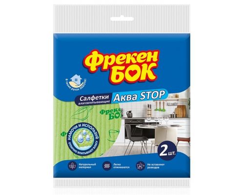 Вологопоглинаючі серветки Фрекен БОК АкваSTOP виготовлені з натурального матеріалу 100% целюлози. Відмінно вбирають вологу, не залишають розводів, ефективно справляються з різними забрудненнями. У вологому стані м'які і еластичні, при висиханні тверднуть, що перешкоджає розвитку бактерій і неприємних запахів.